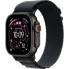 Apple watch Ultra 3اپل واچ اولترا نسل 3 با بدنه تیتانیومی مشکی و بند مشکی آلپاین، ساعت هوشمندی مقاوم، سبک و پیشرفته است که امکانات جامع سلامت و ورزش را در قالبی شیک ارائه میدهد.