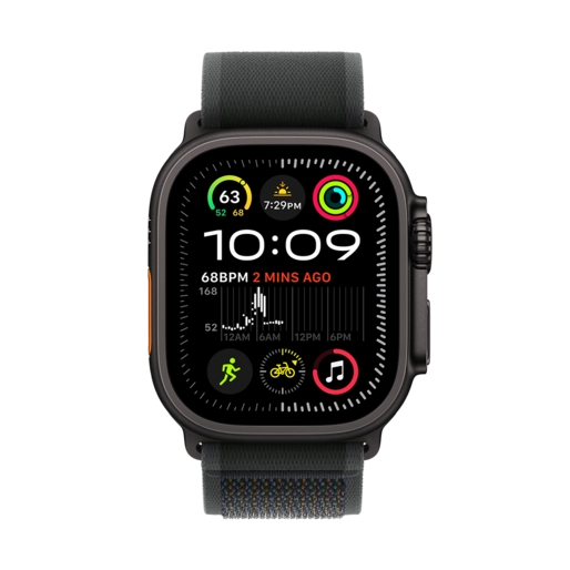 Apple watch Ultra 2اپل واچ مدل اولترا نسل 2 با بدنه تیتانیومی مشکی و بند لوپ ترایل مشکی، ترکیبی از دوام بینظیر، طراحی مدرن و فناوری پیشرفته است که در سال ۲۰۲۴ به بازار عرضه شده است.