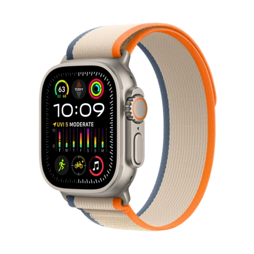 اپل واچ مدل اولترا نسل 2 تیتانیومی با بند لوپ ترایل نارنجی بژ