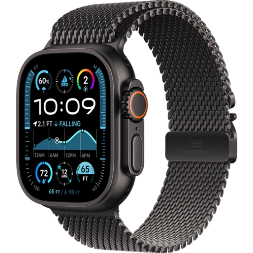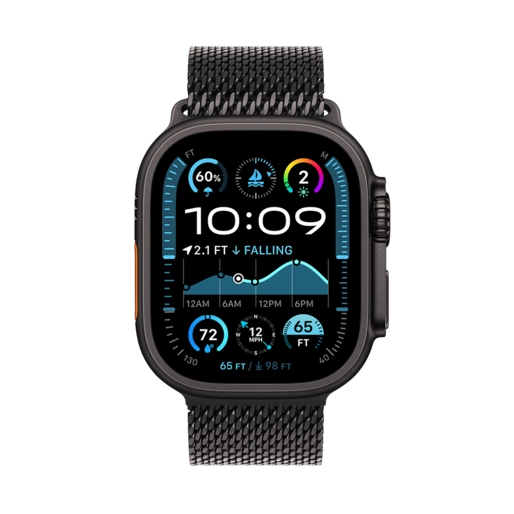 این مدل از اپل واچ با بدنهای ساخته شده از تیتانیوم مرغوب، مقاومت و سبکی را همزمان فراهم میکند. استفاده از بند میلانس مشکی، ظاهری مدرن و شیک به ساعت داده است که با هر سبک پوششی بهخوبی هماهنگ میشود. صفحه نمایش روشنتر و بزرگتر نسبت به نسل اولترا، باعث شده تجربه کاربری بهتری ایجاد شود.