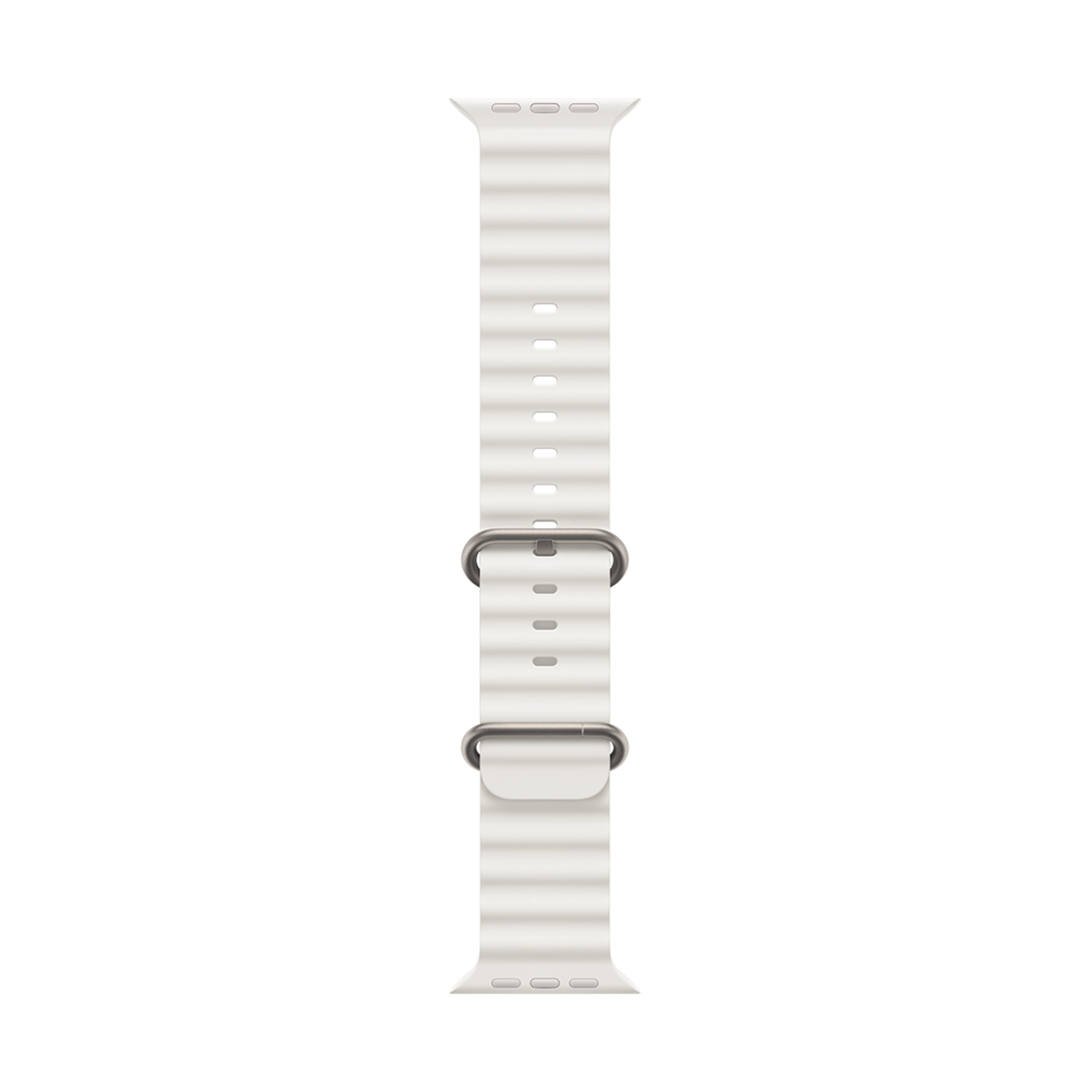 در حالی که بند اوشن نارنجی برای دید در شرایط خاص کاربرد دارد، بند اوشن سفید یک زیبایی‌شناسی منحصر به فرد به همراه کارایی بالا ارائه می‌دهد. این بند از همان ماده فلوئوروالاستومر بادوام ساخته شده است. این ماده در برابر کلر، نمک و اشعه UV مقاومت عالی نشان می‌دهد. سفید بودن این بند، در کنار قاب تیتانیومی مات، یک ظاهر بسیار مدرن و برجسته ایجاد می‌کند. ورزشکارانی که ظاهر شیک را در کنار عملکرد فنی می‌خواهند، این ترکیب رنگ را تحسین می‌کنند. این بند همچنین برای استفاده روزمره و محیط‌های اداری کاملاً مناسب است.